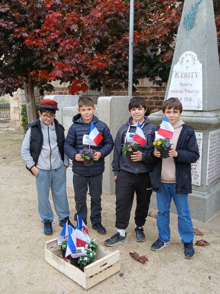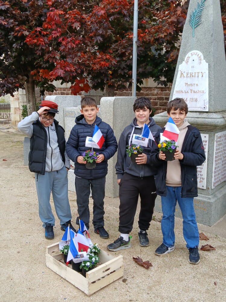 A Kérity les jeunes volontaires qui sont venus fleurir les tombes ont cheminé à travers la nécropole comme on le ferait dans un jeu de piste. Une foule de questions surgissait à chacune des allées. Que veut dire « Tombé pour la France ? ». « Tombé au champs d’honneur », est-ce le même sens ? Et que veut dire « F.T.P » ? Les mémoires se rencontrent, s’entremêlent ; celles des familles et celle plus officielle de la nation.