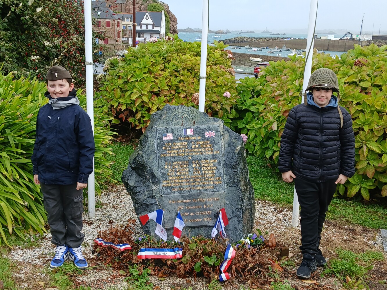 A Loguivy, un courageux duo a bravé les rafales pluvieuses pour suivre Mr François le Fur, notre guide du « Souvenir français », à travers les stèles. Une véritable visite guidée qui les aura menés à la rencontre avec chacun de ces morts illustres : un disparu du Meknès, une agente de liaison de la Résistance, un marin disparu en Indochine… Sans oublier les aviateurs américains dont le monument se dresse face à la chapelle.